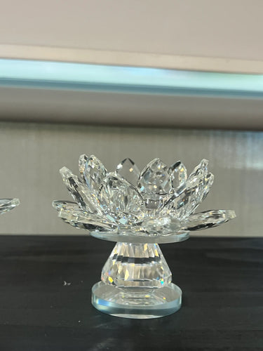 This smaller exquisite crystal lotus candle holder, exudes timeless elegance and luxury. Expertly crafted with intricate facets that catch and reflect light beautifully, it serves as a stunning decorative centerpiece—symbolizing purity, harmony, and refined sophistication in any space.
